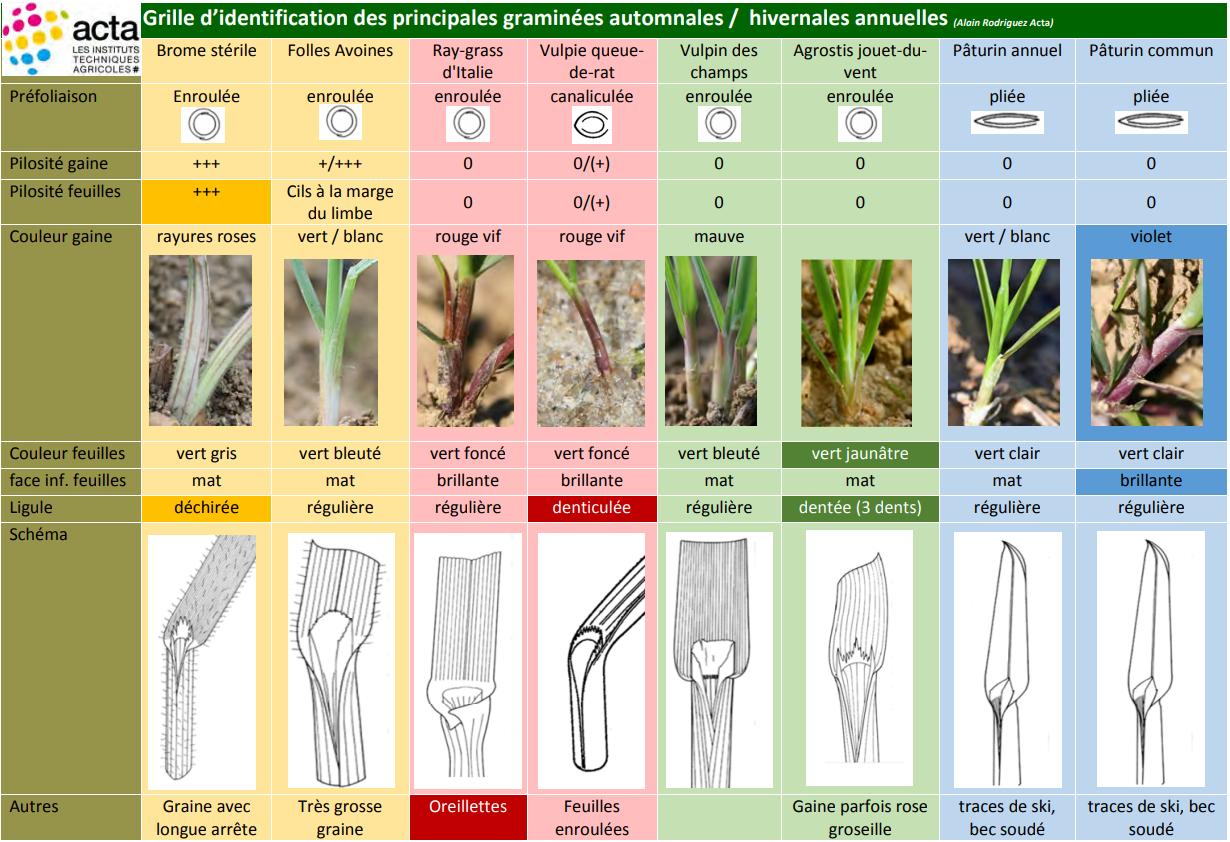 Reconnaître les graminées à levées automnales/hivernales au stade plantule (1 à 3 feuilles) pour optimiser les pratiques de désherbage.