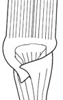 Prolongement du limbe autour de la gaine en forme de petites cornes.