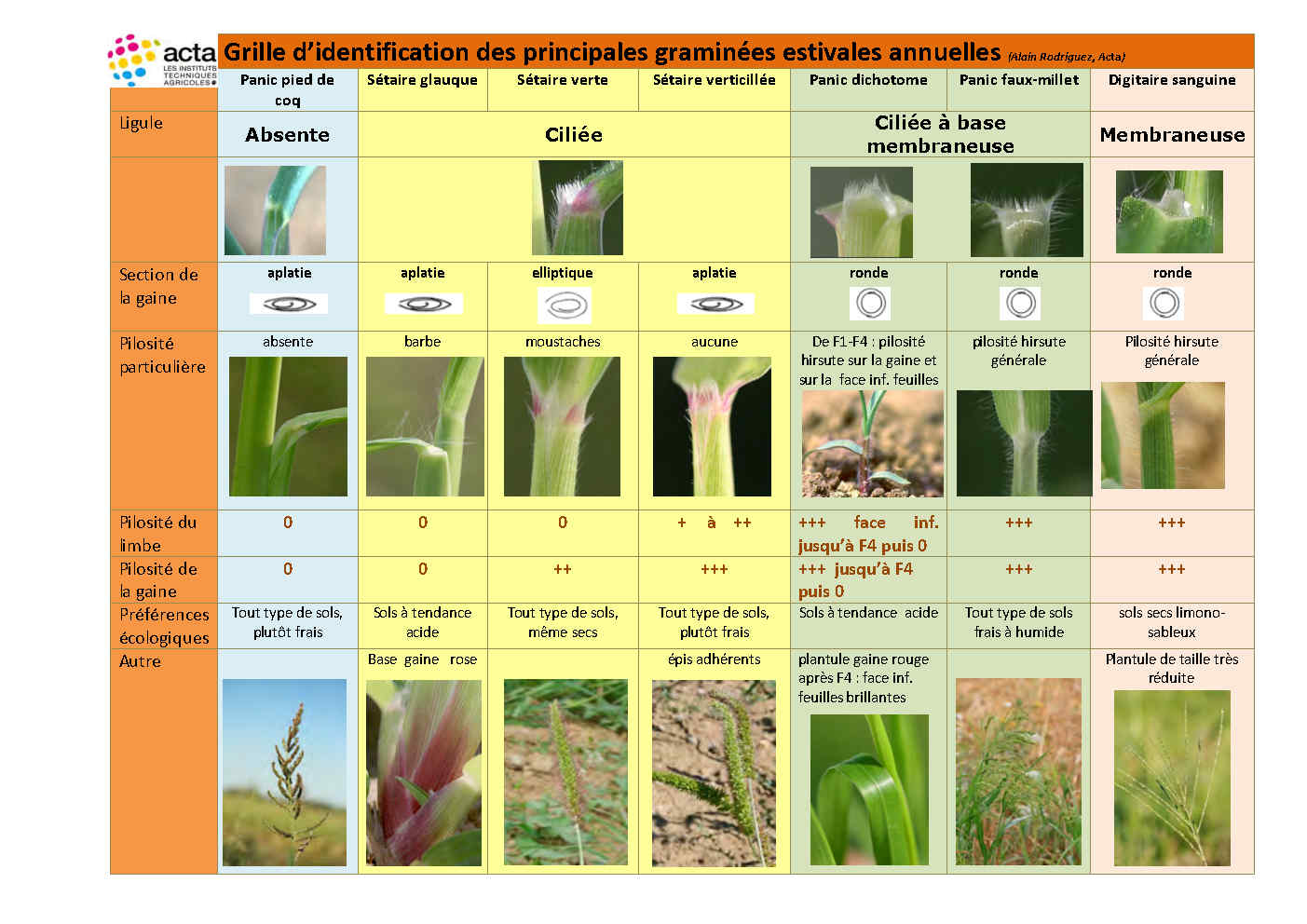 Reconnaître les graminées à levées printanières/estivales au stade plantule (1 à 3 feuilles) pour optimiser les pratiques de désherbage.